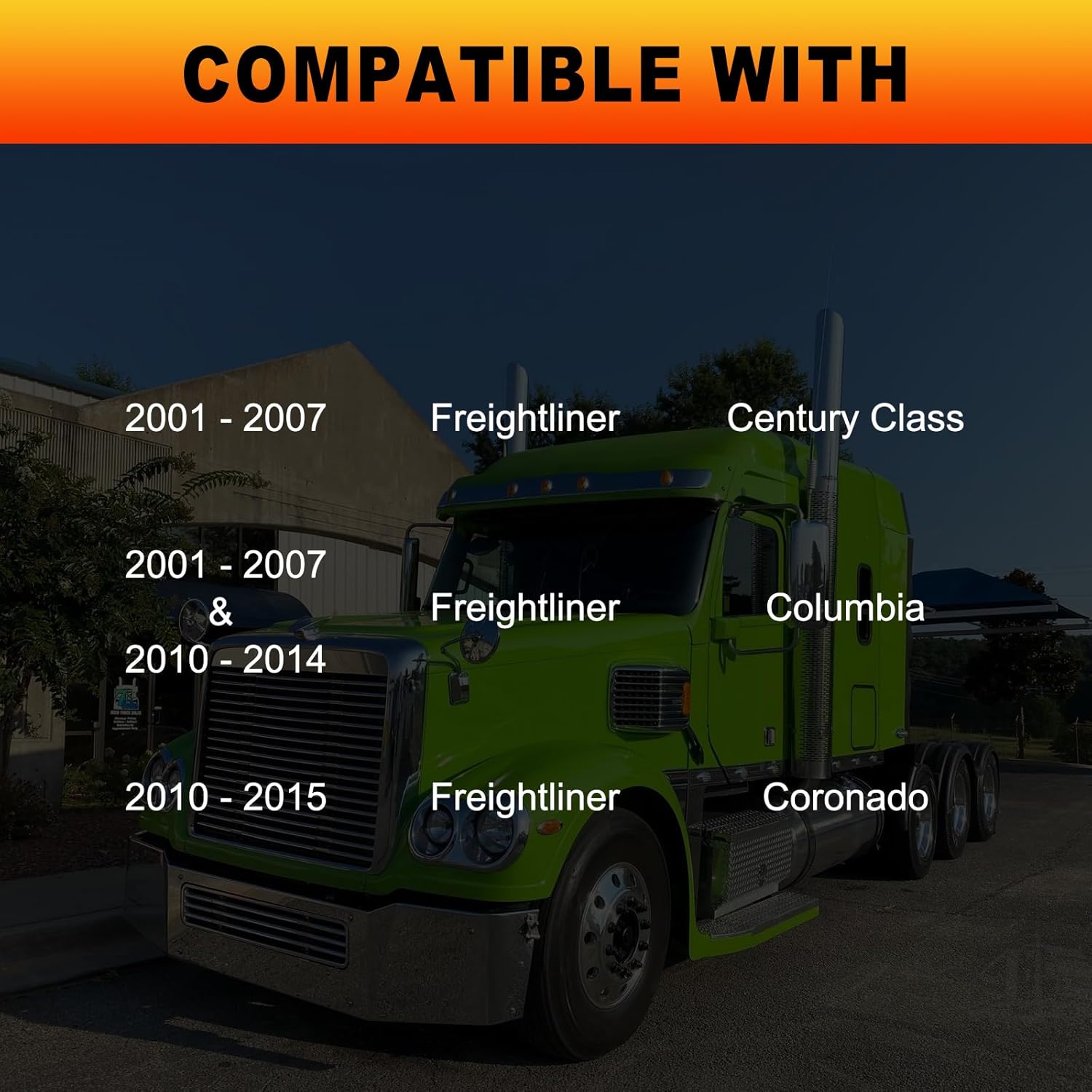 Compatible with Select Freightliner Models – 2001 – 2007 Freightliner Century Class, 2001 – 2007 & 2010 – 2014 Freightliner Columbia, 2010 – 2015 Freightliner Coronado.