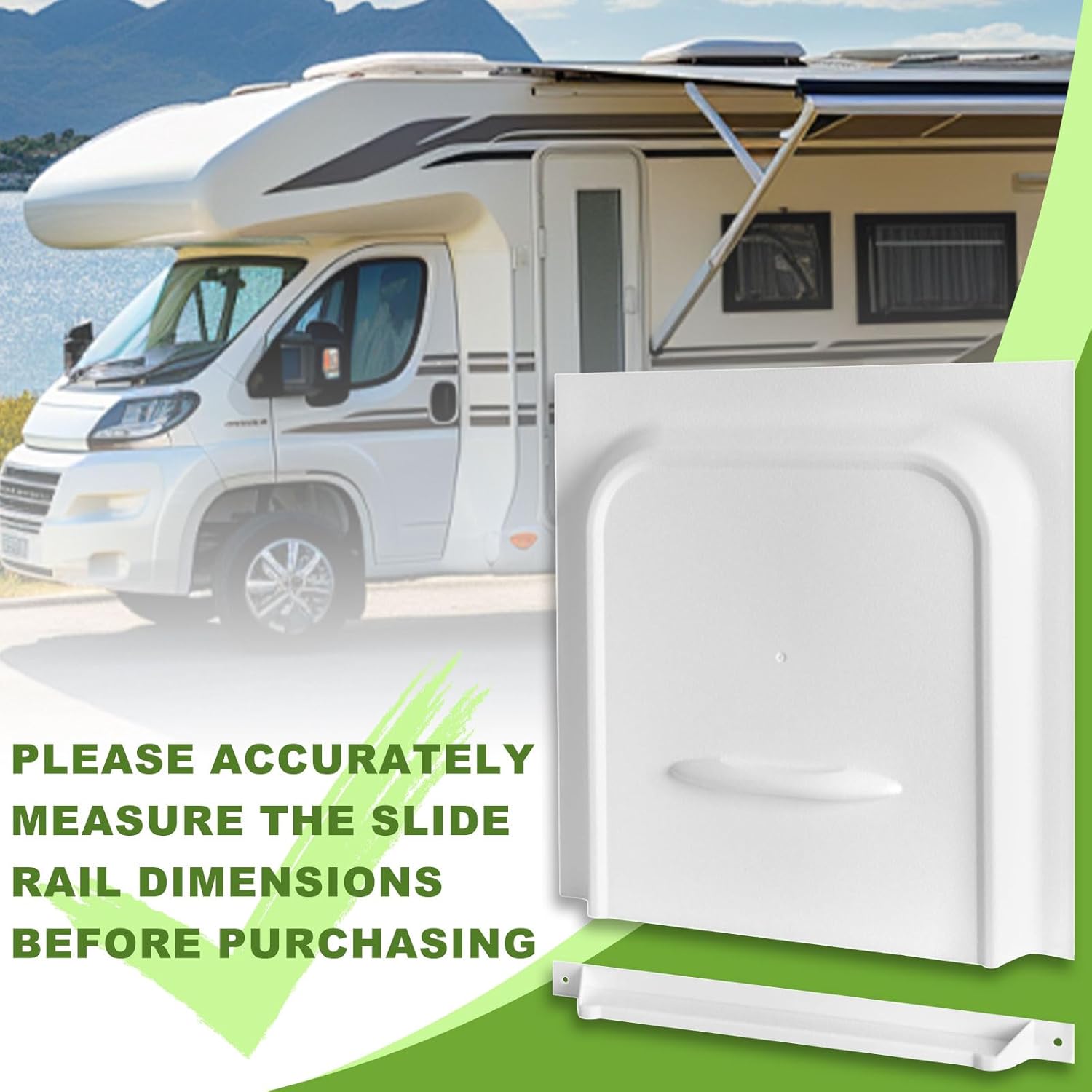 Please measure the height and width of your RV’s slide-out opening and purchase according to your actual size requirements.