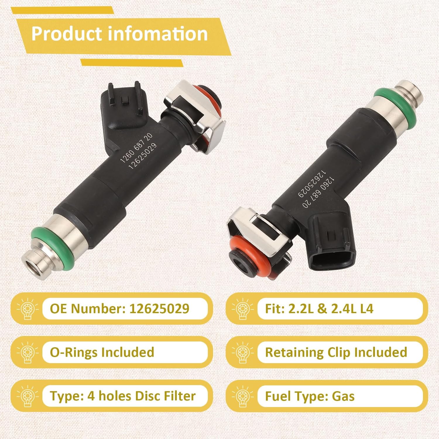 [OE Auto Parts] – 12625029 Performance 2.4L fuel injectors sold by Pjvmvo are OE parts.We use VIN matching to ensure the integrity of our inventory and accuracy of product descriptions.Offer high quality, and long-lasting performance.