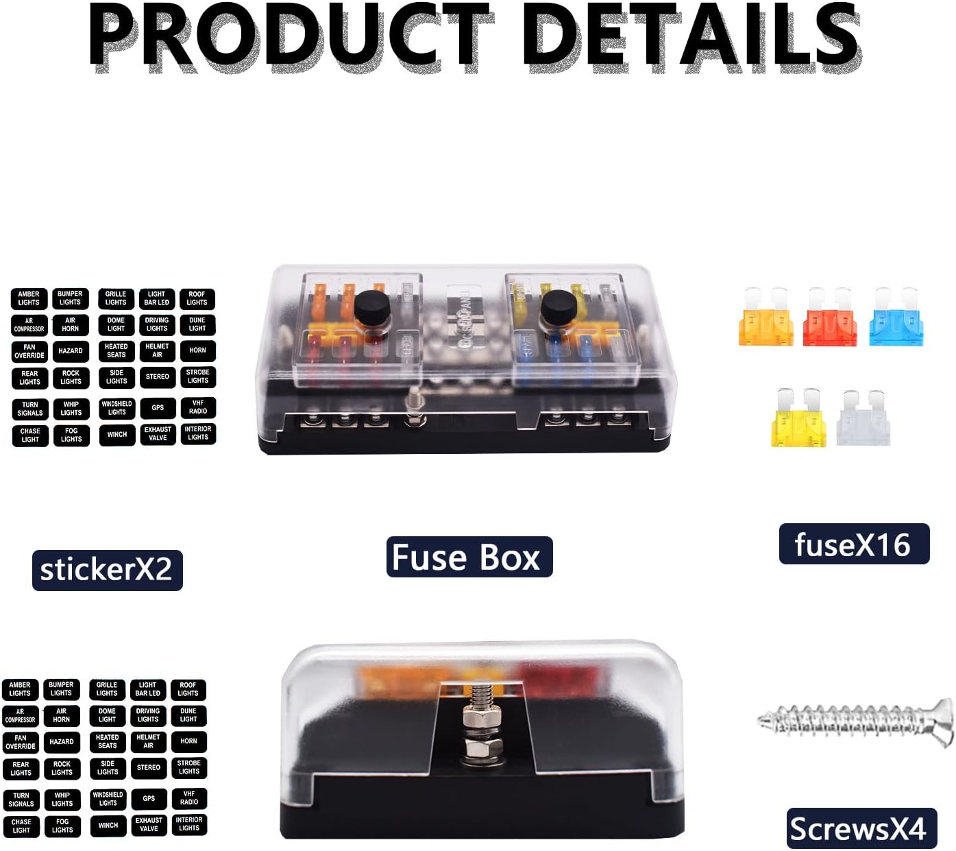 This design for 16 Way (12 circuit) fuse block while mostly others only 12 circuits max, it can accept more circuit protection. Safety protection: Made of insulating materials, it plays a certain role in electrical safety isolation.