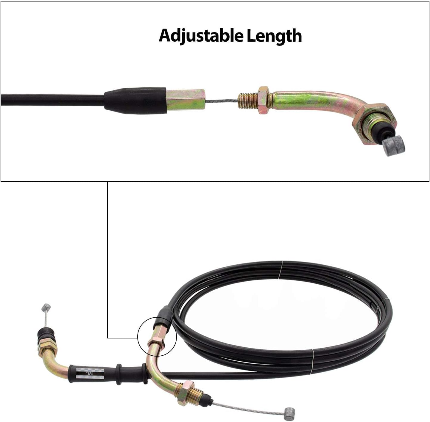 【Size for Reference】 Overall Length: 82 Inches (2082.8 mm) Sleeve Length: 78 Inches (1981.2 mm) 4 Stroke Throttle Cable, works on 150cc GY6 and most 50cc 4 Stroke Scooters.