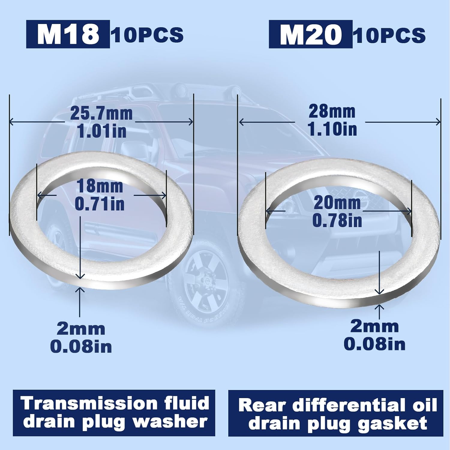 🚗【WHAT YOU GET】20-Pack Transmission oil plug crush washers (10-Pcs) & rear differential oil plug gasket (10-Pcs). DCWecher professional quality, to provide premium service for your vehicle.