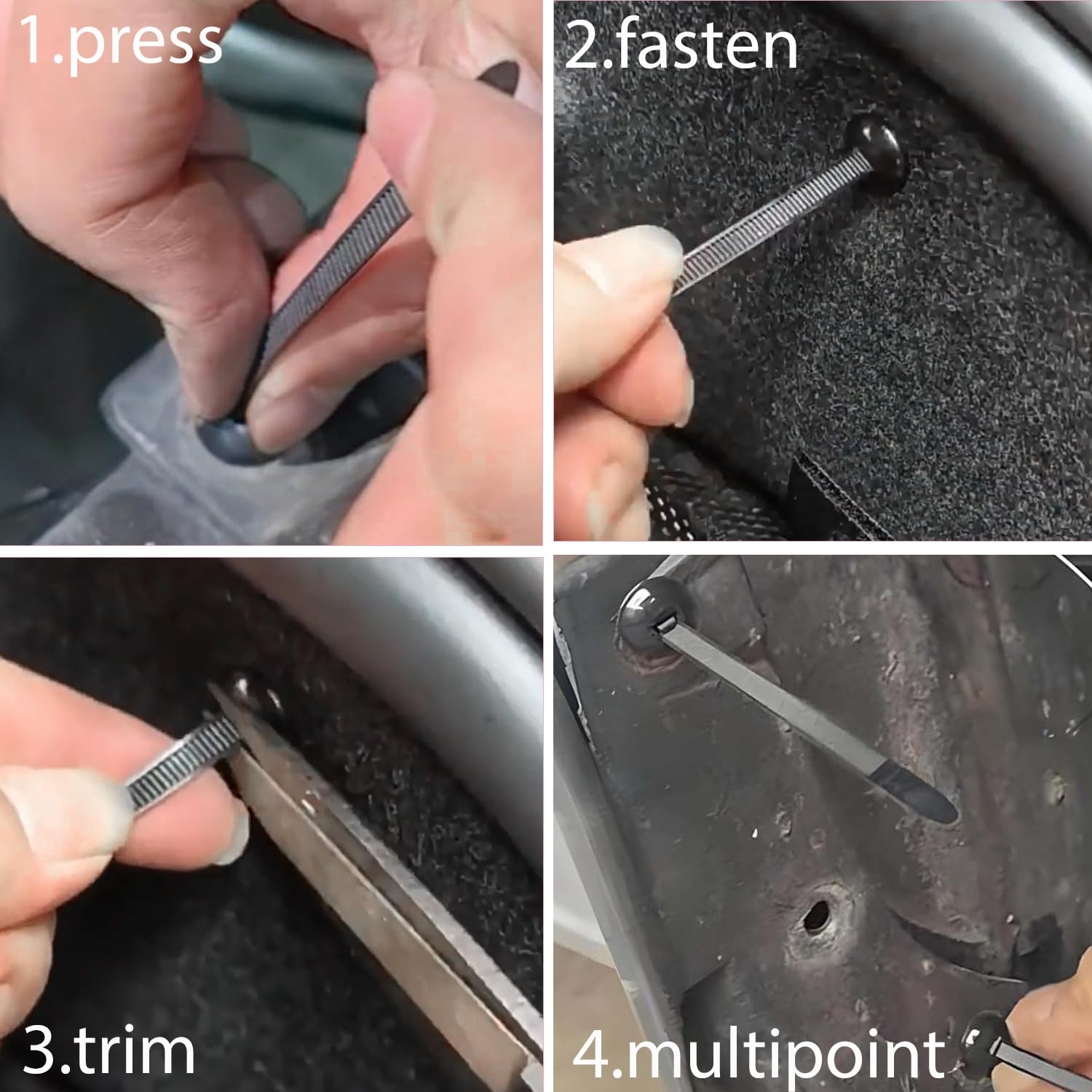 【Universal Fit for 95% of Vehicles】Designed to replace screws and clips, these nylon universal cable tie buckles are compatible with most car models. Ideal for securing bumpers, trunk liners, engine covers, and undercarriage panels during regular maintenance or emergency repairs.