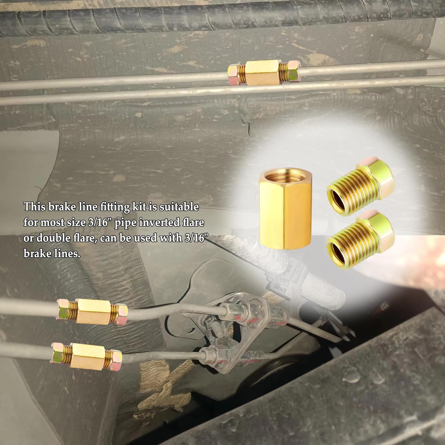⭐ Fit for 3/16″ Brake Lines: This brake line fitting kit is suitable for most size 3/16″ pipe inverted flare or double flare, can be used with 3/16″ brake lines. Please check the brake line size carefully before purchasing to avoid the product being unusable after receiving it.