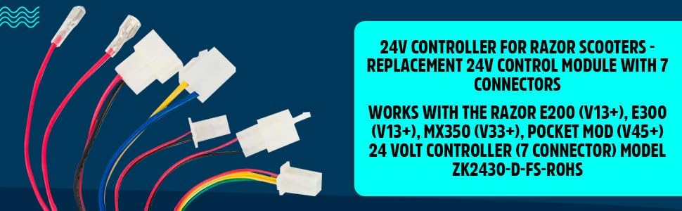 24V Control Module for Razor Electric Scooters – 7-Connector Controller for Razor E200 (V24+), E300 (V20+) MX350 (V33+), Pocket Mod (V45+), Pocket Rocket (V27+) – Model ZK2430-D-FS-ROHS – Part W13113601015