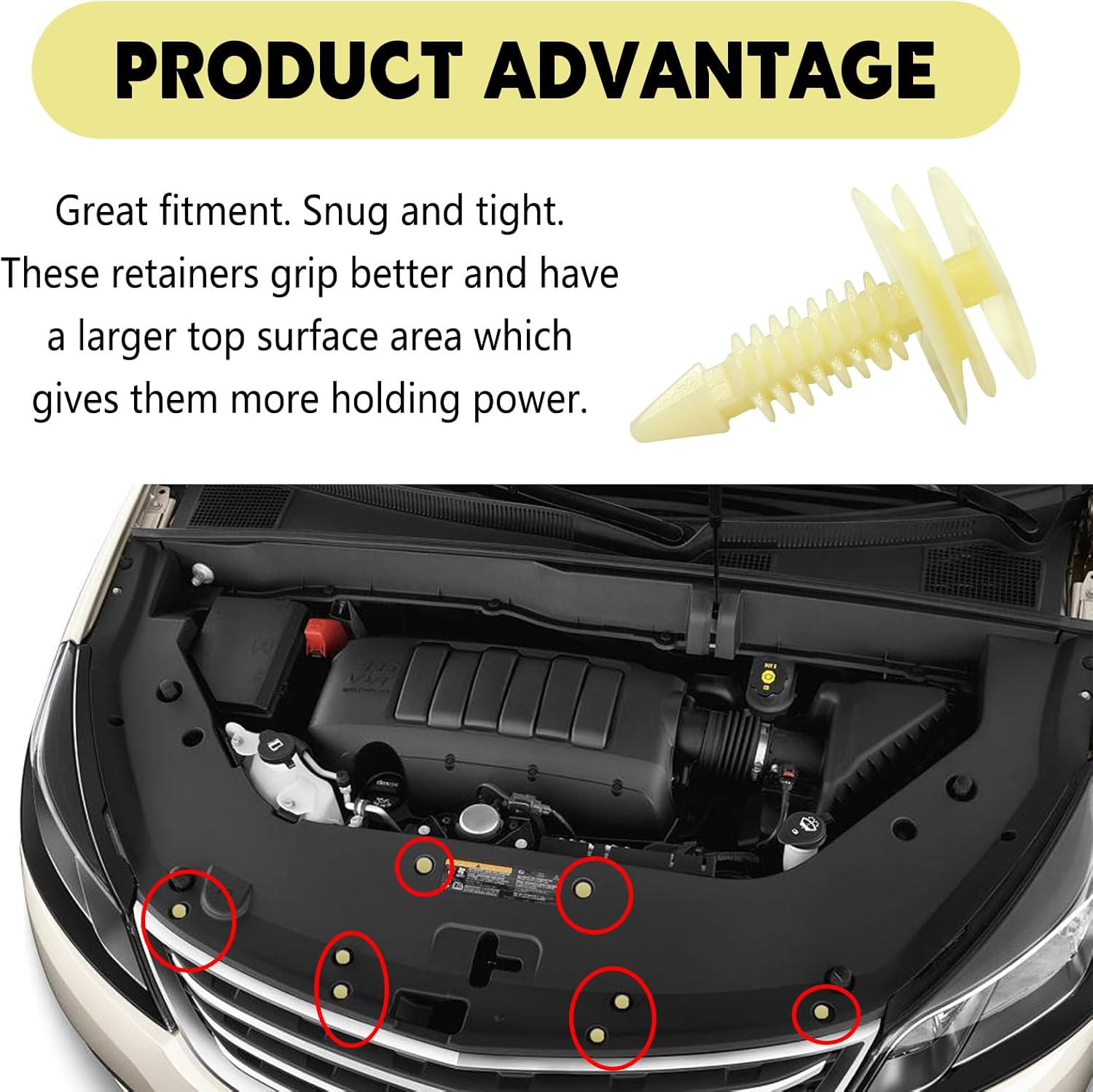 【Wide Application】- These Push clips are widely used for trim panel clips, interior trim panels and various trim panel, Door Panel clips, install side skirts, bumpers, Bumper clips, Fender clips, car fenders, engine hoods, door trim panels, Engine cover and splash shield retainers replacement, etc.