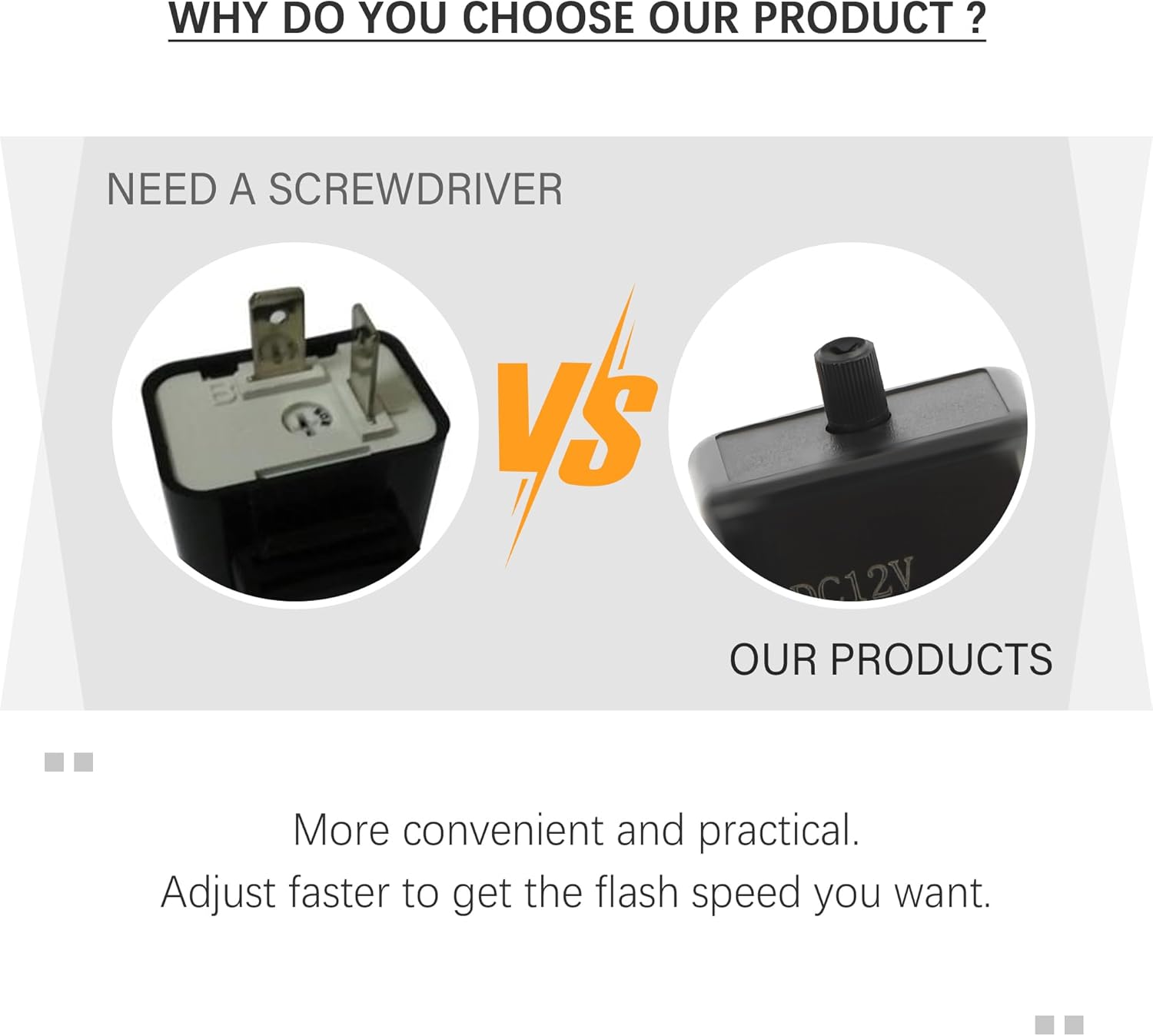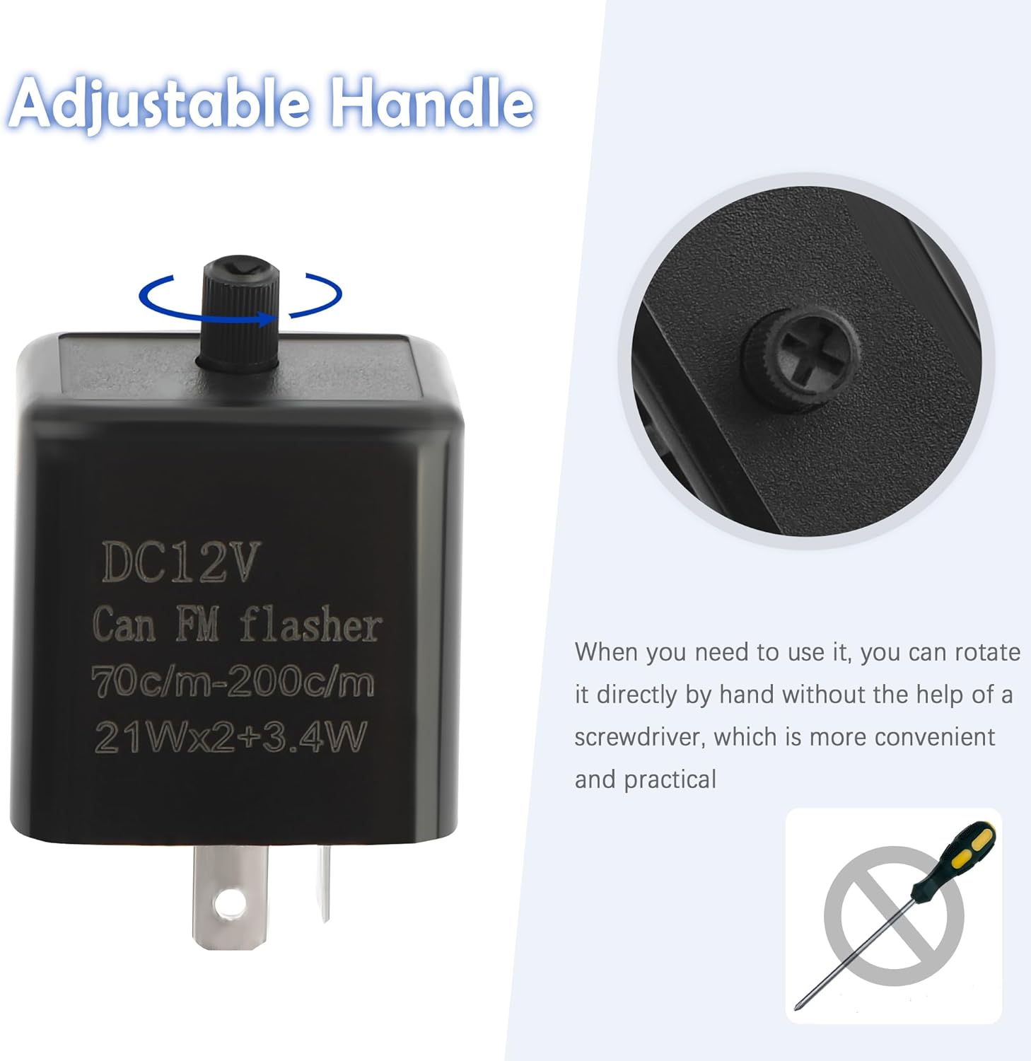 🚘Adjustable Handle – This 12V motorcycle blinker relay is set with an adjustable handle, when you need to use it, you can directly rotate it by hand without the assistance of a screwdriver, more convenient and practical. Quicker adjustment to get the flash speed you want. There are three levels of frequency can be adjusted, counterclockwise rotation flash speed faster, clockwise rotation flash speed slower.