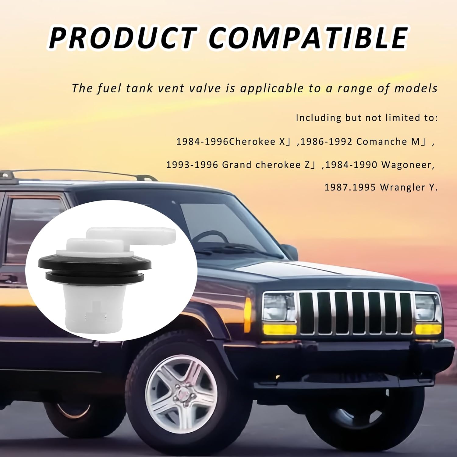 Compatible With: Fuel tank vent valves with grommet seals for Je-ep Cherokee XJ 1984-1996, Comanche MJ 1986-1992, Grand Cherokee ZJ 1993-1996, Wagoneer, Wrangler YJ 1987-1995.