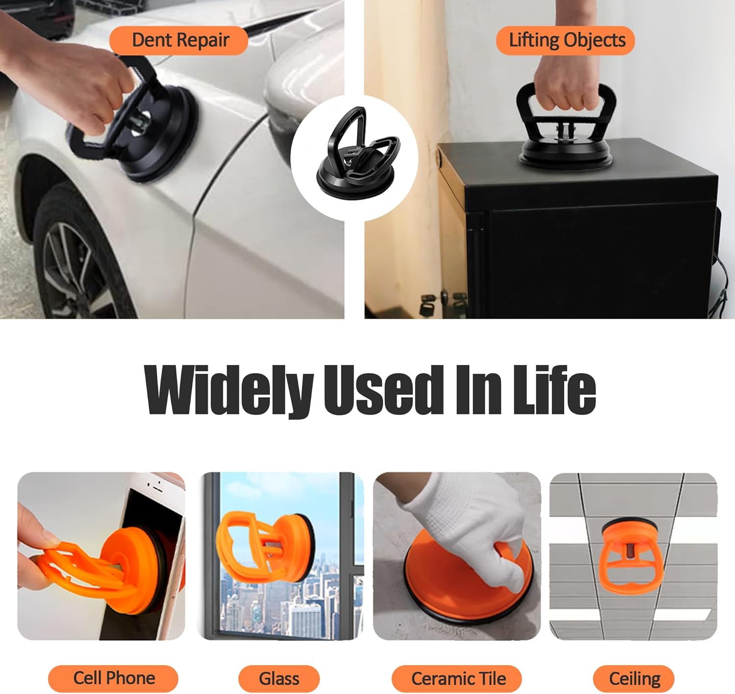 3 Packs Dent Puller,Car Dent Puller,Car Dent Remover Tools for Car Dent Repair, Glass, Screen, Tiles & Objects Moving Black&Orange
