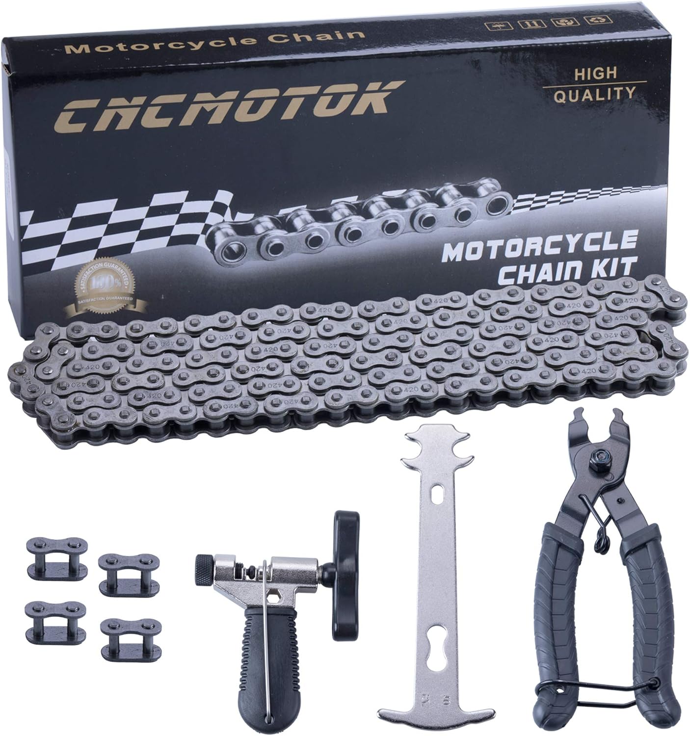 1 x 420 Motorcycle Chain 132 Link1 x Chain breaker kit4 xChain Connector Link