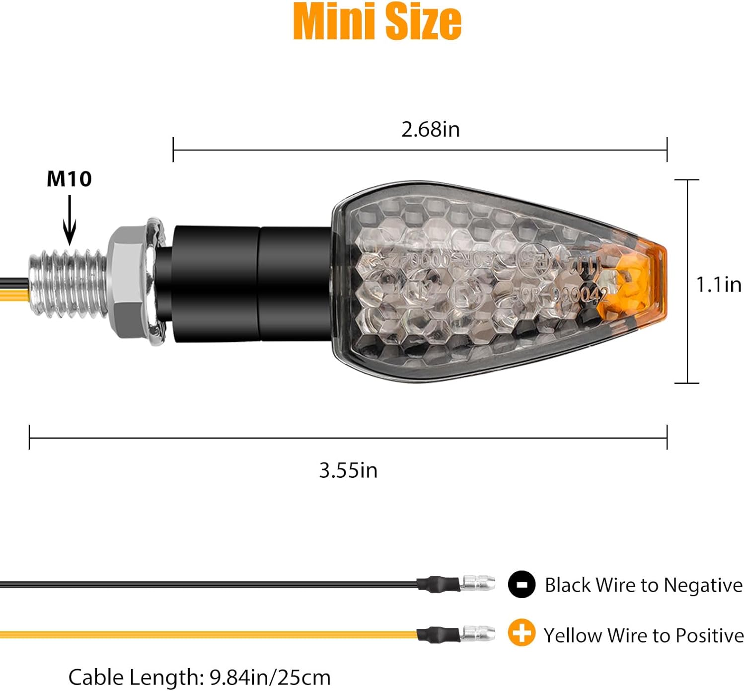 Motorcycle led turn signal lights consist of 14 super bright LED chips, not only suitable for night driving but also very bright and eye-catching in the daytime.