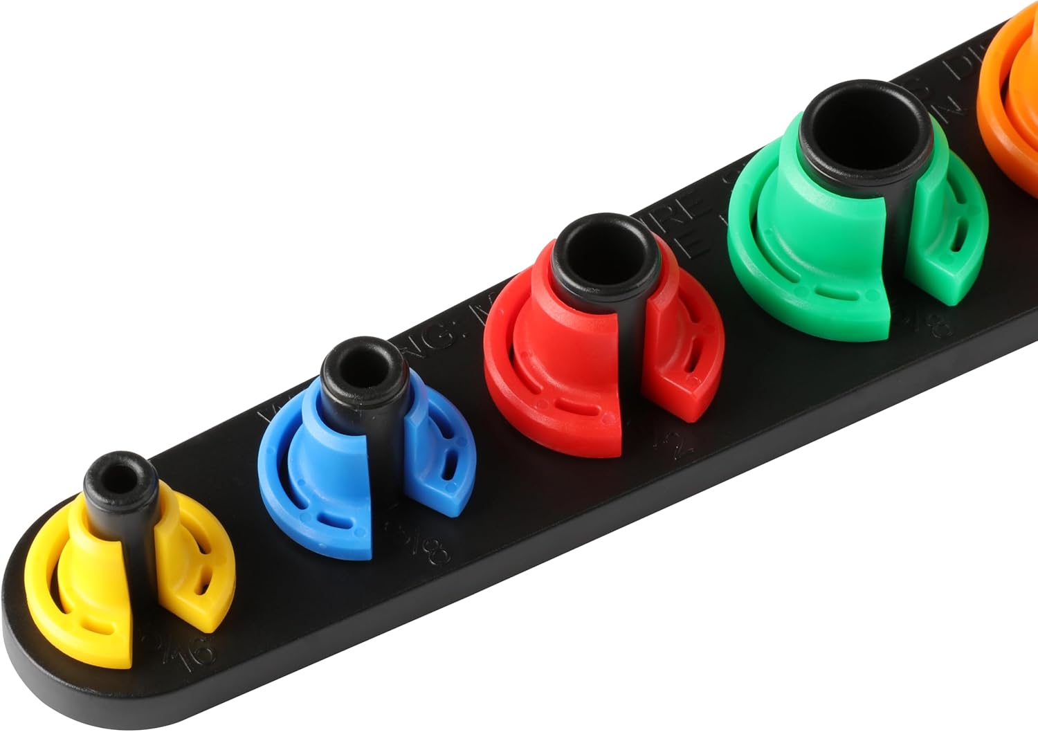 Color-coded products provide easy identification of six sizes : 5/16″, 3/8″, 1/2″, 5/8″, 3/4″ and 7/8″