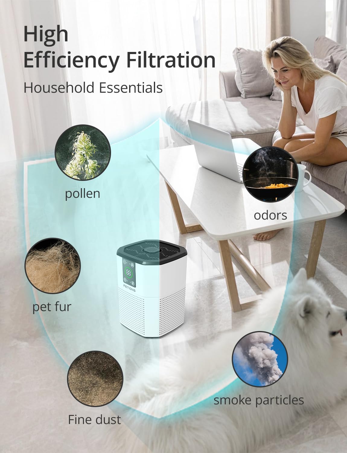 SMALL BUT POWERFUL: Small and fashion design, making it easy to fit in any small space like bedrooms, dorm rooms, nurseries, offices that coverage up to 300 sq.ft, 360° air intake powerful enough