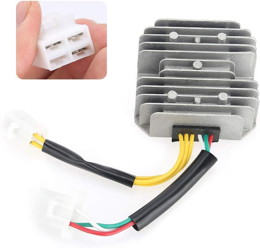 2 plug, 6-wire voltage regulator/rectifier fit for GY6 125/150/250cc 4-stroke 152QMi 152QMJ 157QMI 157QMJ engine with 11 Pole Stator found on scooters, quads, ATVs, and mopeds.