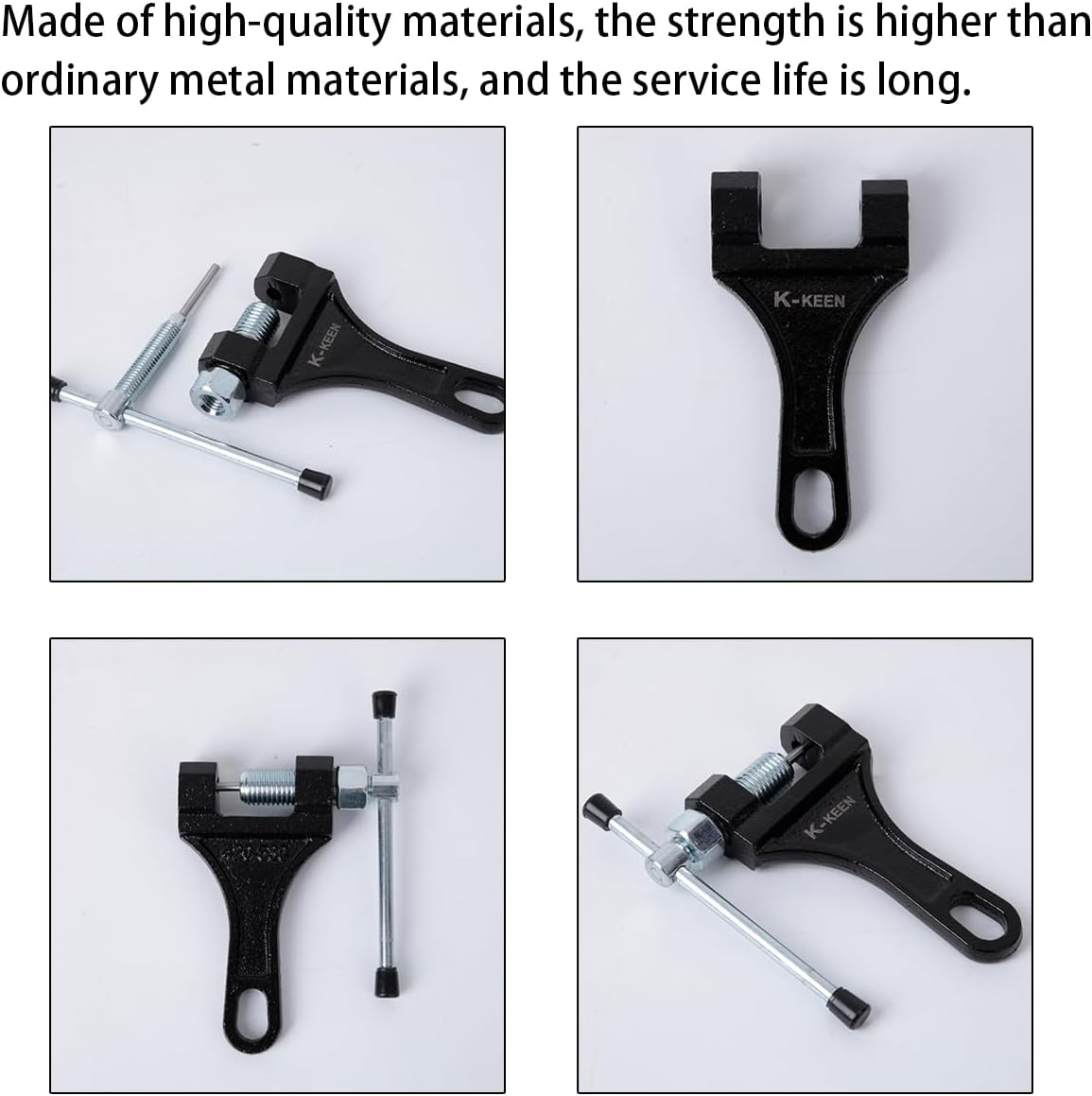 【Strong Material】: This #420-530 chain breaker is mainly made of high quality cast steel, thickened material, durable and wear-resistant. It has a very high strength, hard texture and long service life. Stainless steel spring, not easy to rust or break, excellent using experience.
