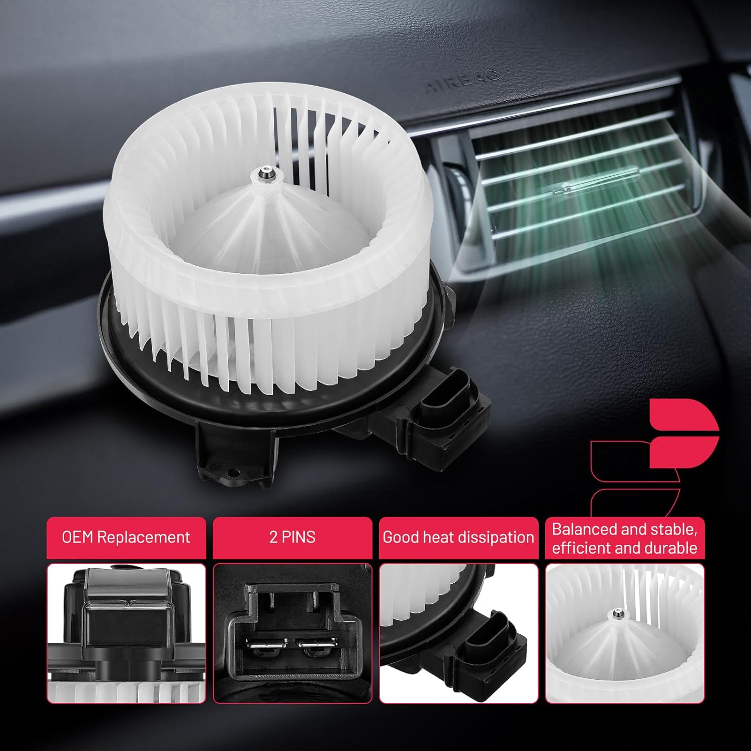 【 Blower Motor Features】:Built with high-quality materials, this blower motor is designed to withstand the rigors of daily use, offering long-lasting durability and reliable performance.Despite its powerful performance, this blower motor operates quietly, ensuring a comfortable and noise-free driving experience.