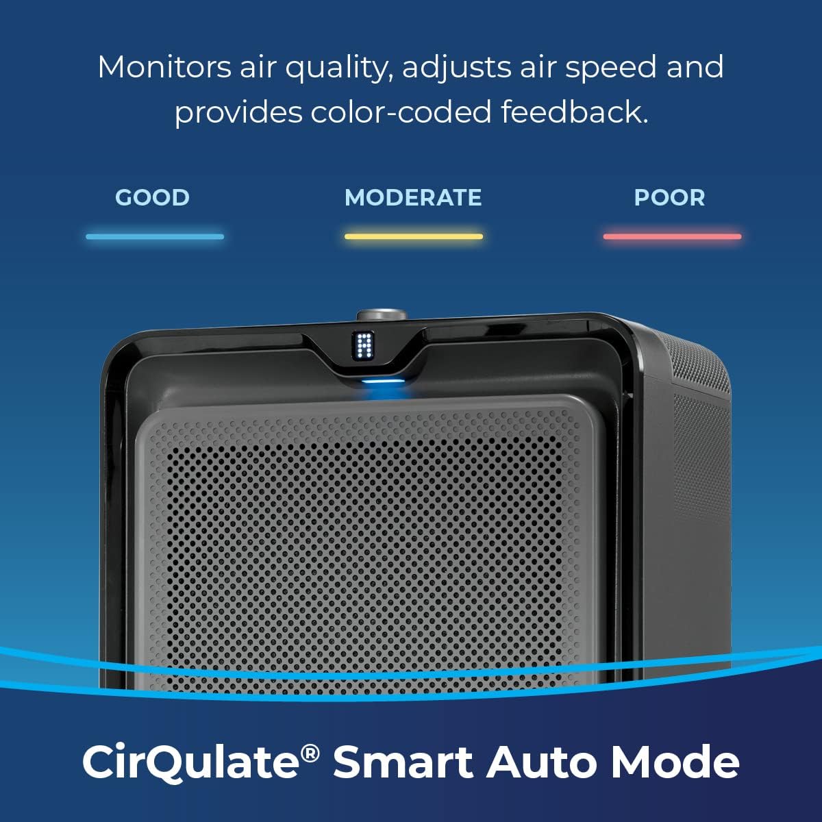 Medical-grade HEPA filter: Captures 99.97% of particles 0.3 microns and smaller at lowest fan speed, removing airborne allergens and irritants