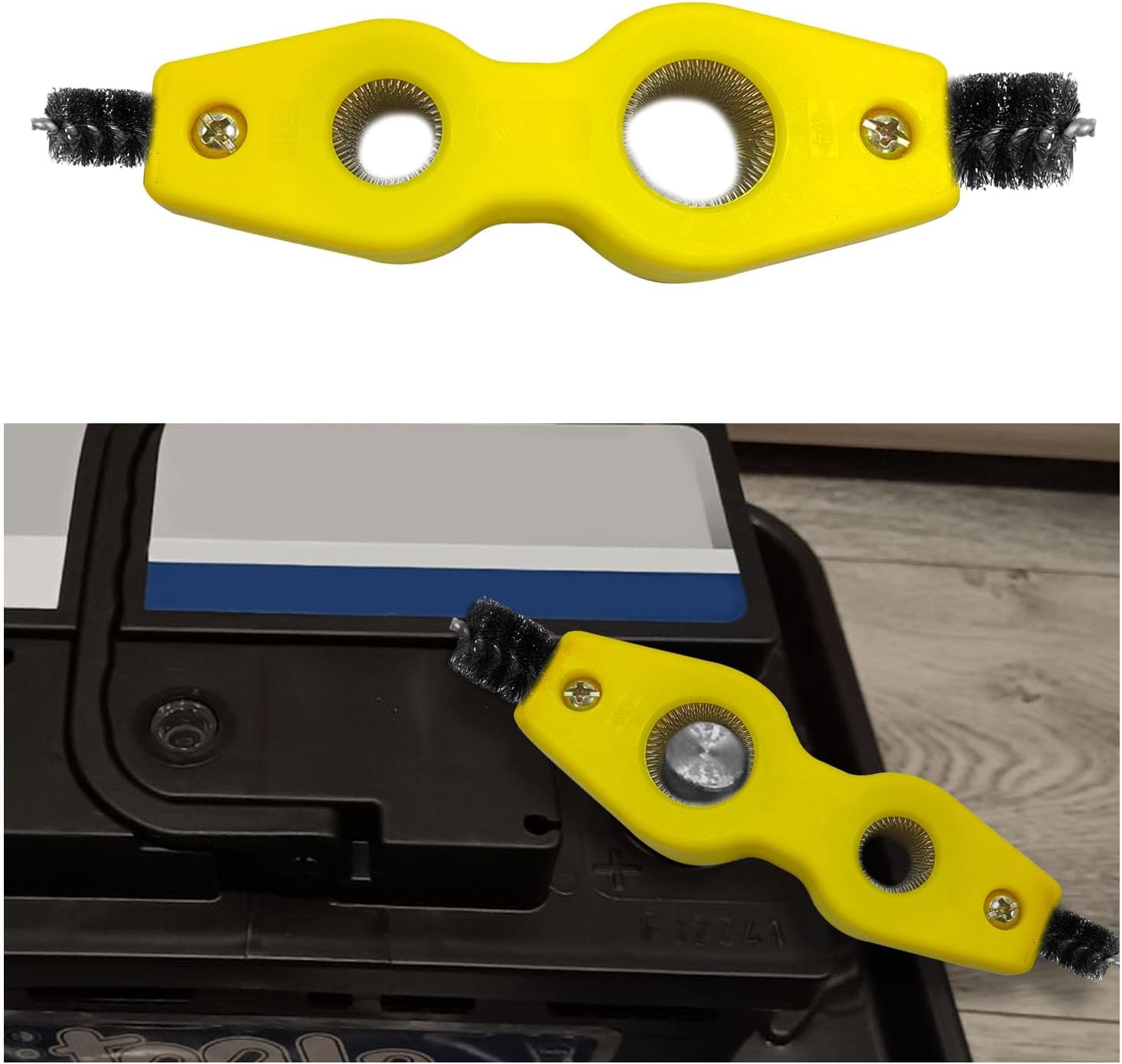 【Wide Application】: This double-head car battery brush has a wide range of compatibility, can be applied in cleaning most vehicles’ batteries, as well as cleaning steel parts, mechanical parts, unfinished metal parts, and many other parts.