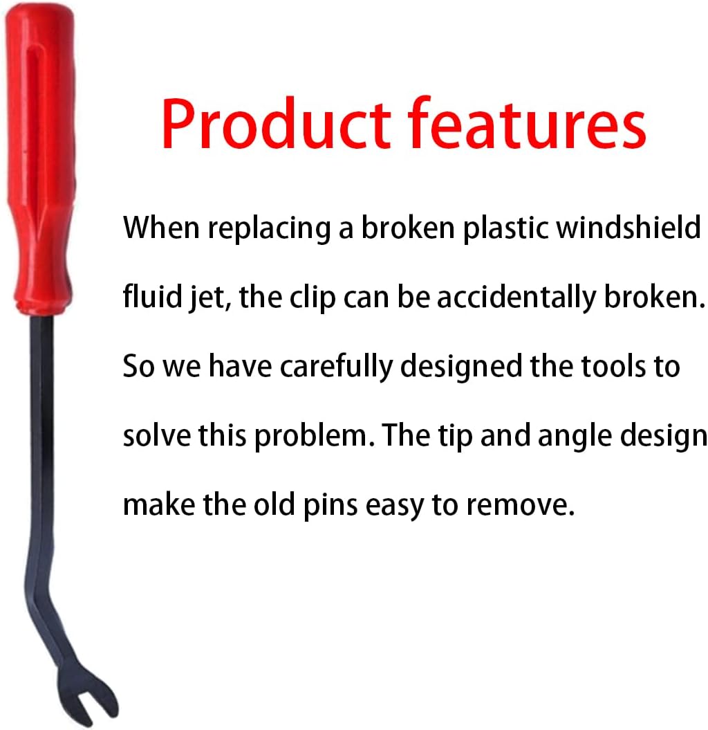 【Product Function】: When replace a broken plastic windshield fluid jet, it is very easy to break the clips. We especially design the tool to solve this problems. The design of the tip and angle made removing the old pins easily. With the tool, the clips are more easier to remove.