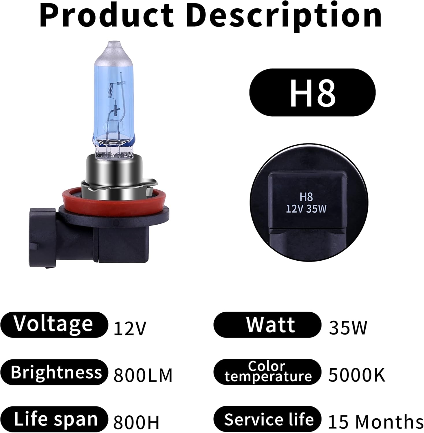 【SUPER BRIGHT】Our H8 Headlight Bulb is filled with more than 45% Xenon gas to obtain a brightness of more than 800LM; Blue ion membrane filters yellow light and gets SUPER WHITE LIGHT with color temperature close to 5000K.