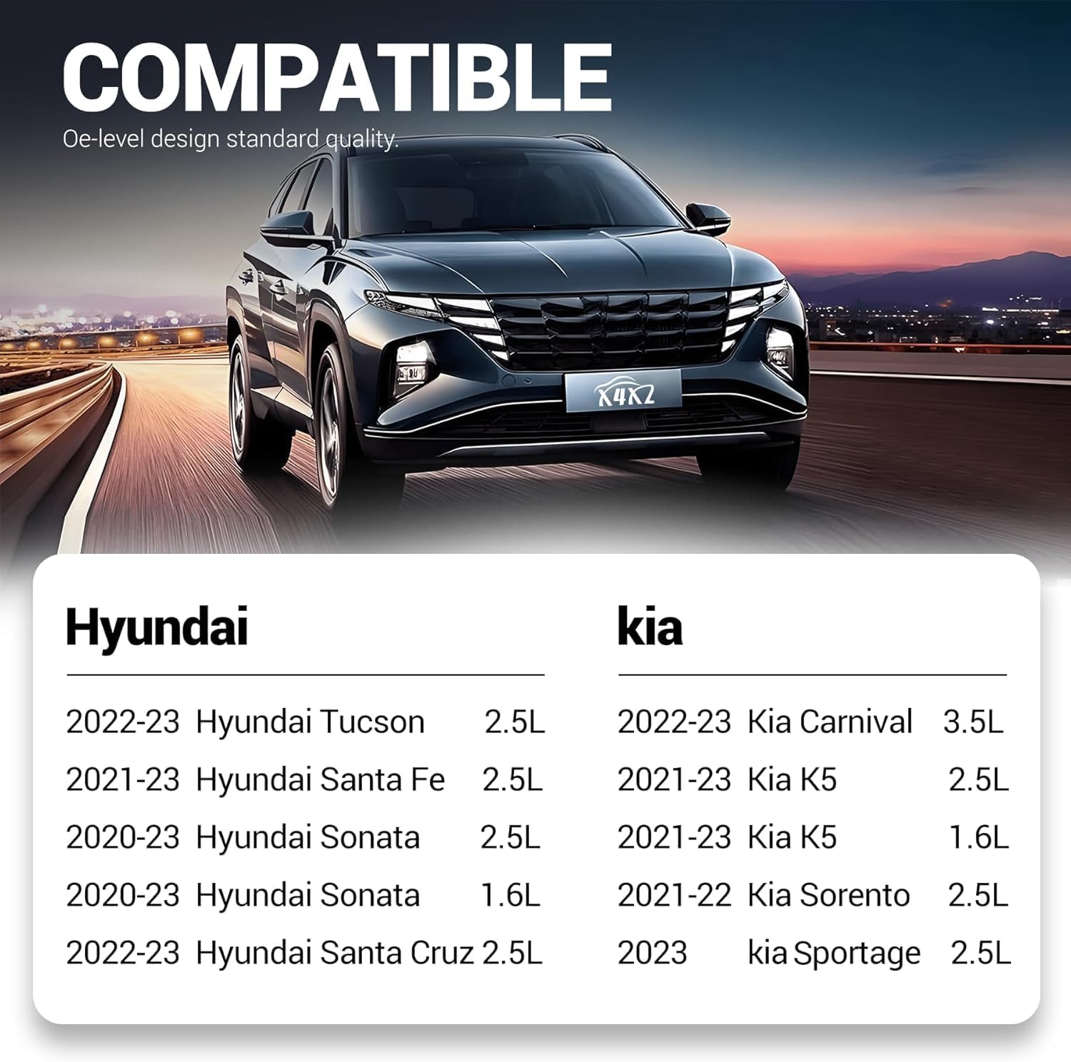 ✔OE# 28113-L1000. Replace OE# WA11090, PA99540. Compatible with: For Hyundai: 2022-2023 Tucson 2.5L丨2021-2023 Santa Fe 2.5L丨2020-2023 Sonata 1.6L/2.5L丨2022-2023 Santa Cruz 2.5L. For Kia: 2022-2023 Carnival 3.5L丨2021-2023 Kia K5 1.6L/2.5L丨2021-2022 Sorento 2.5L丨2023 sportage 2.5L. Please check the second main picture to confirm engine air filter whether compatible with your car.