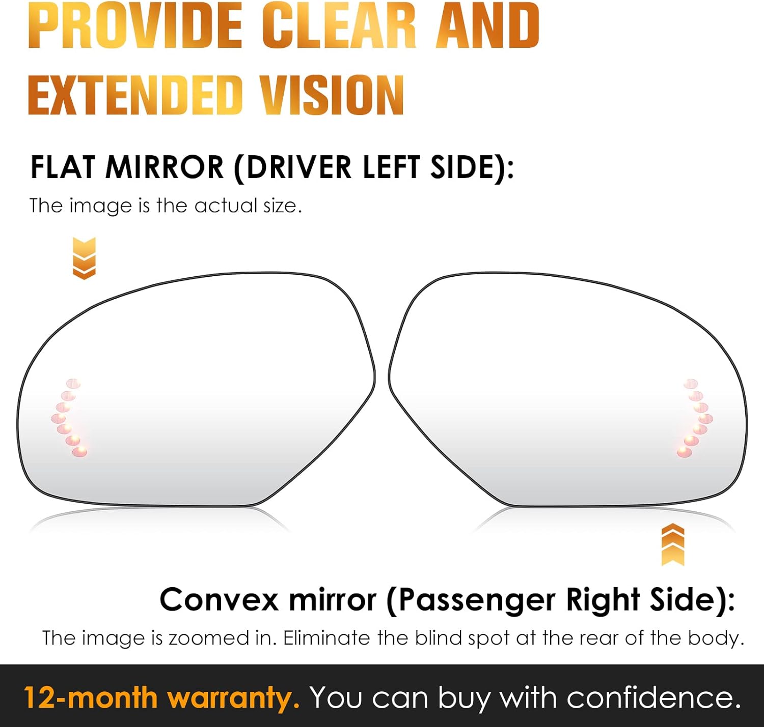 Mirror Glass Fits: for 2007-2014 Cadillac Escalade | for Chevy Avalanche Silverado Suburban Tahoe | for GMC Sierra Yukon 1500 2500 2500HD 3500HD Please review the full model list before purchasing to ensure this product is suitable for your vehicle.