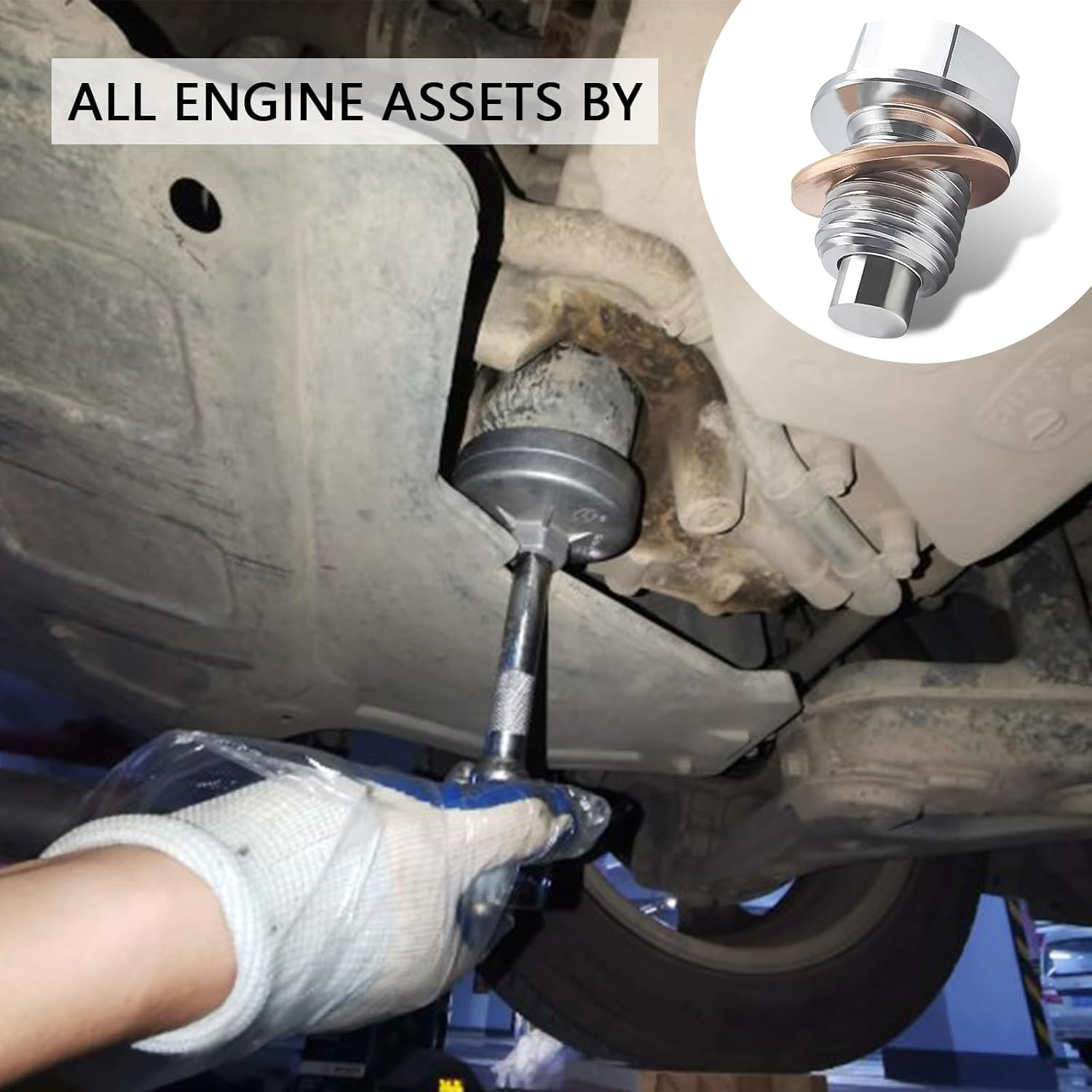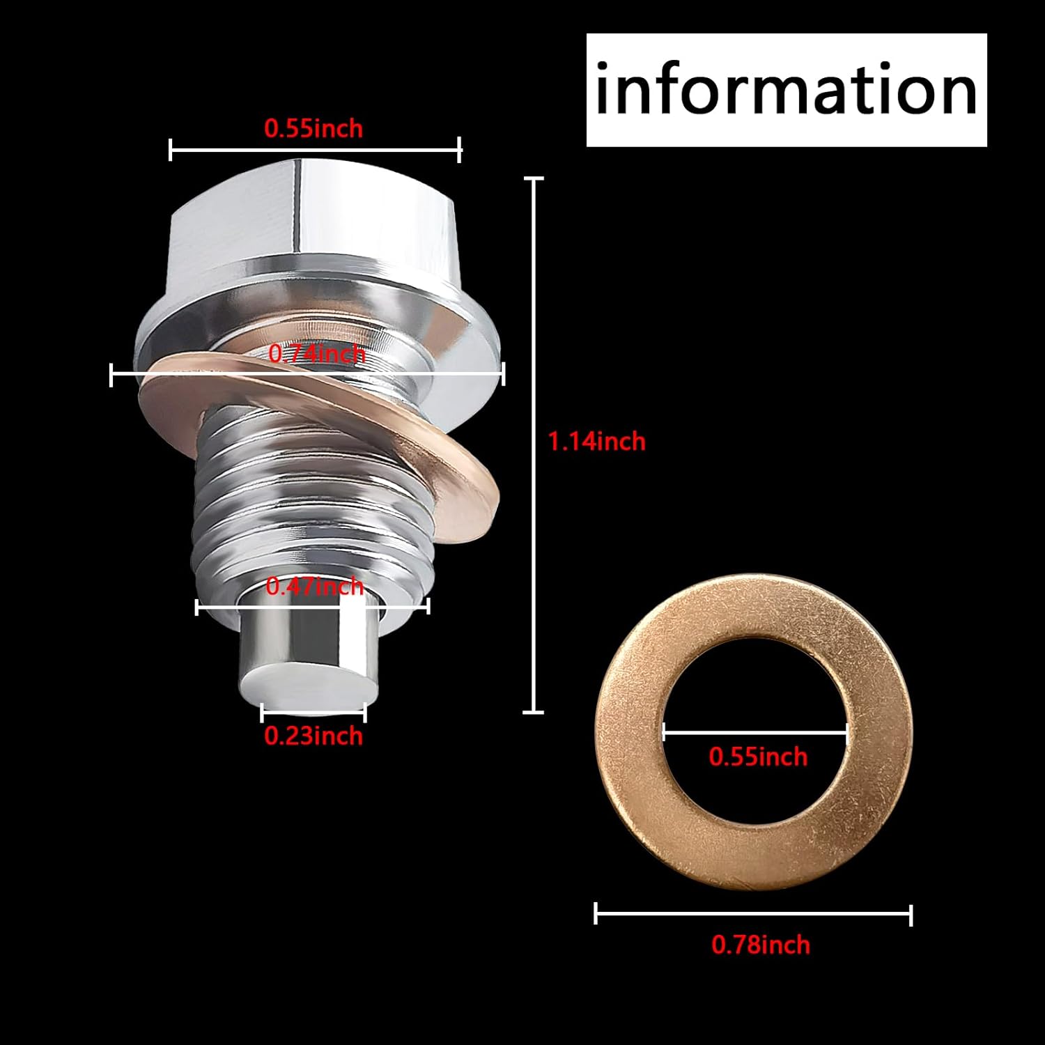 🚘 Easy to Install: With 5 pcs copper washers, this magnetic oil plug is simple to install. When changing the oil, simply wipe the debris on the magnet.