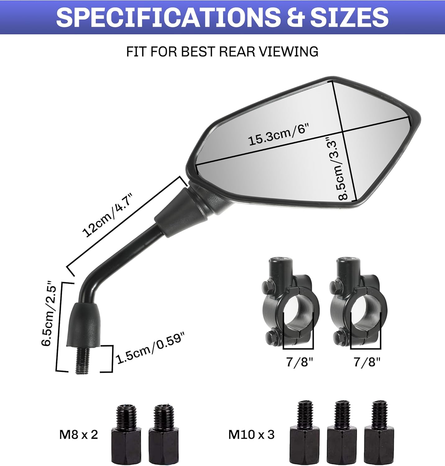 [Clear Vision] The motorcycle’s rearview mirror adopts a 6.7-inch large convex white glass, which provides a wide field of view and high clarity, making it easy to see the upcoming car behind, eliminating blind spots and effectively helping you drive safely.