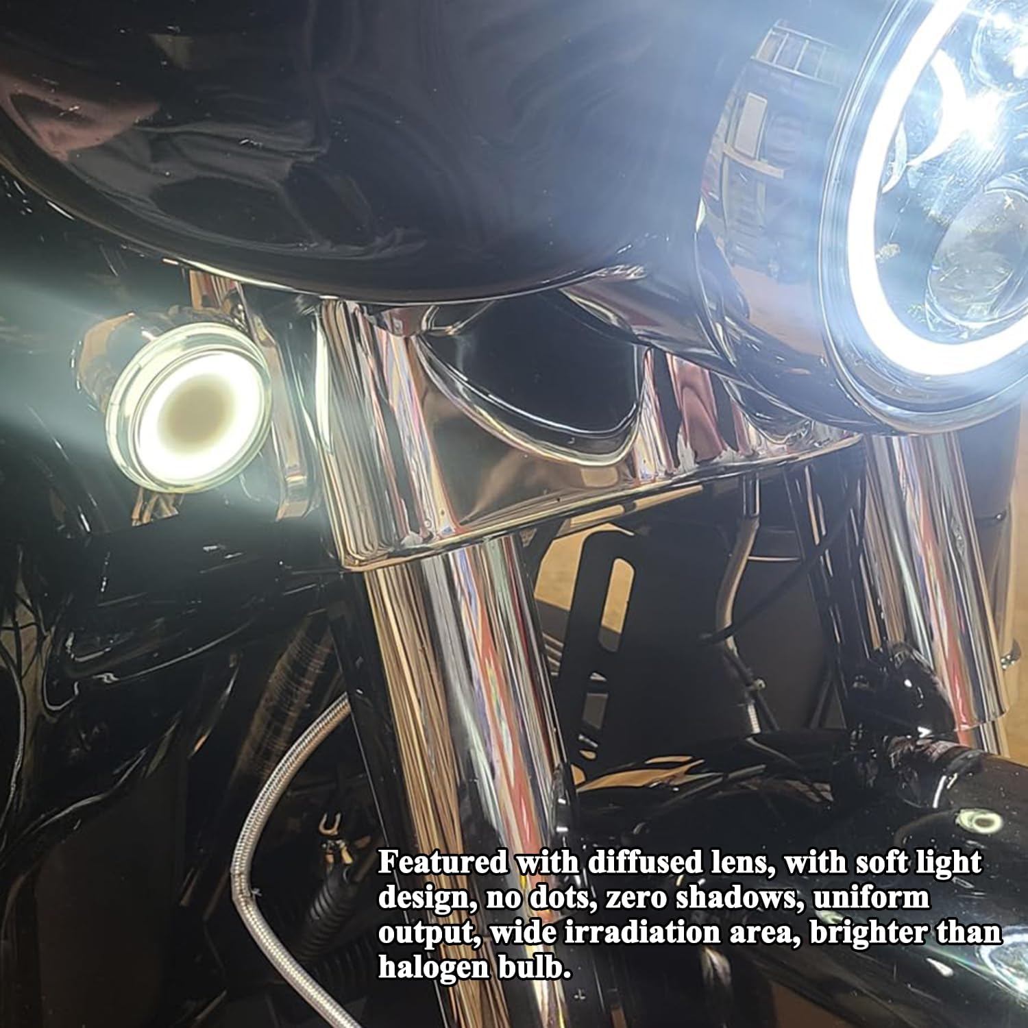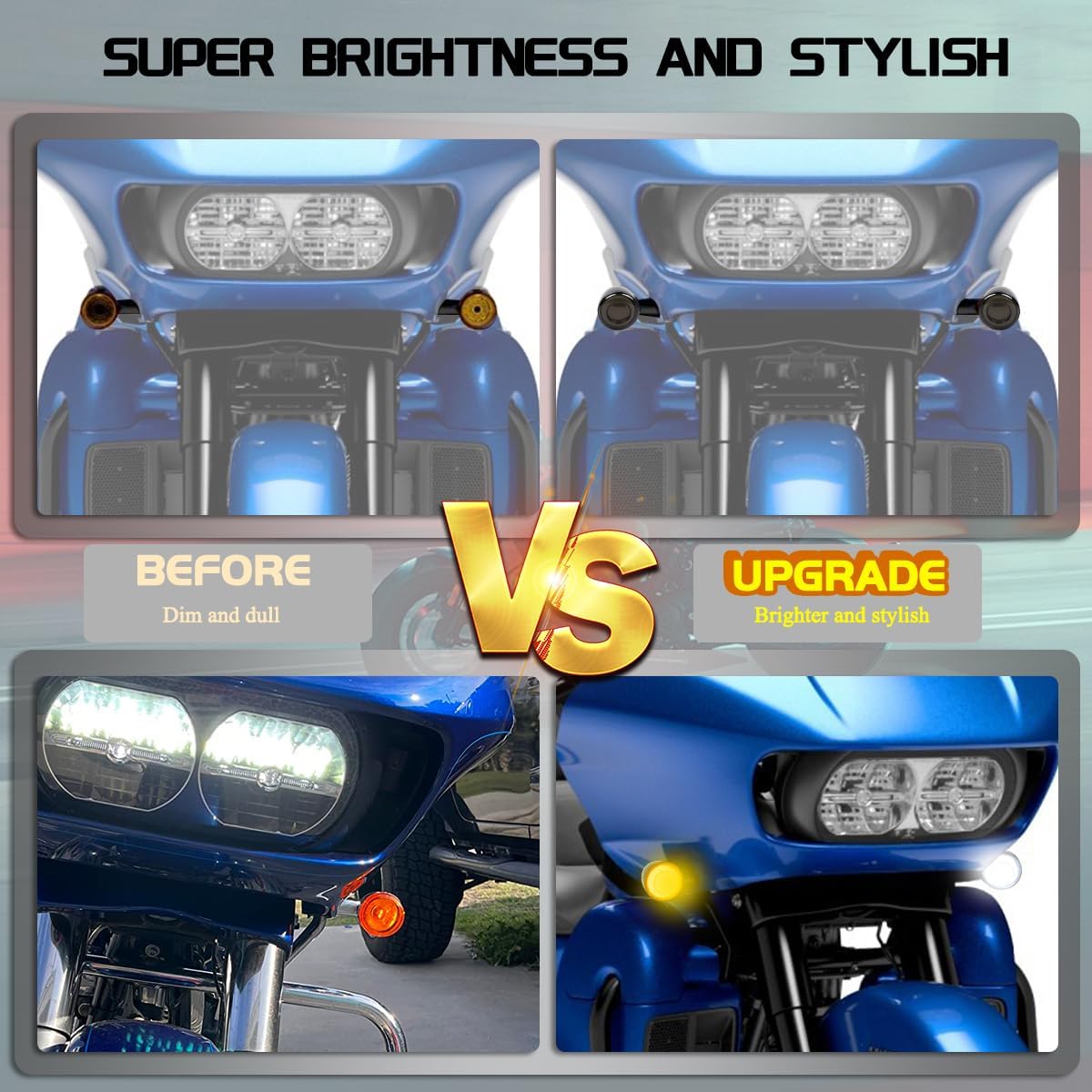 Built in high power LED bulbs, much brighter lighting output than halogen bulbs, greatly improve your visibility, make driving safer; smoked lens add new features to your motorcycle, make you stand out from the crowds.