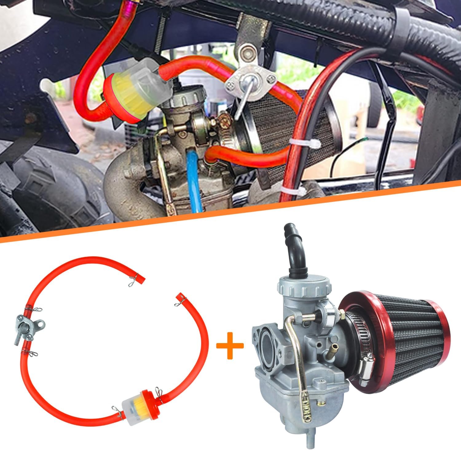 Fitment —PZ20 Carburetor Carb Air filter Gas fuel line hose with shut off valve petcock Kit for 50cc 70cc 90cc 110cc 125cc chinese kids atv four wheeler moped quad dirt pit bike go kart,such As: Roketa Sunl Taotao Coolster Apollo lifan Baja X-Pro Icebear Kazuma Vitacci Venom Buyang Coolsport Redcat.