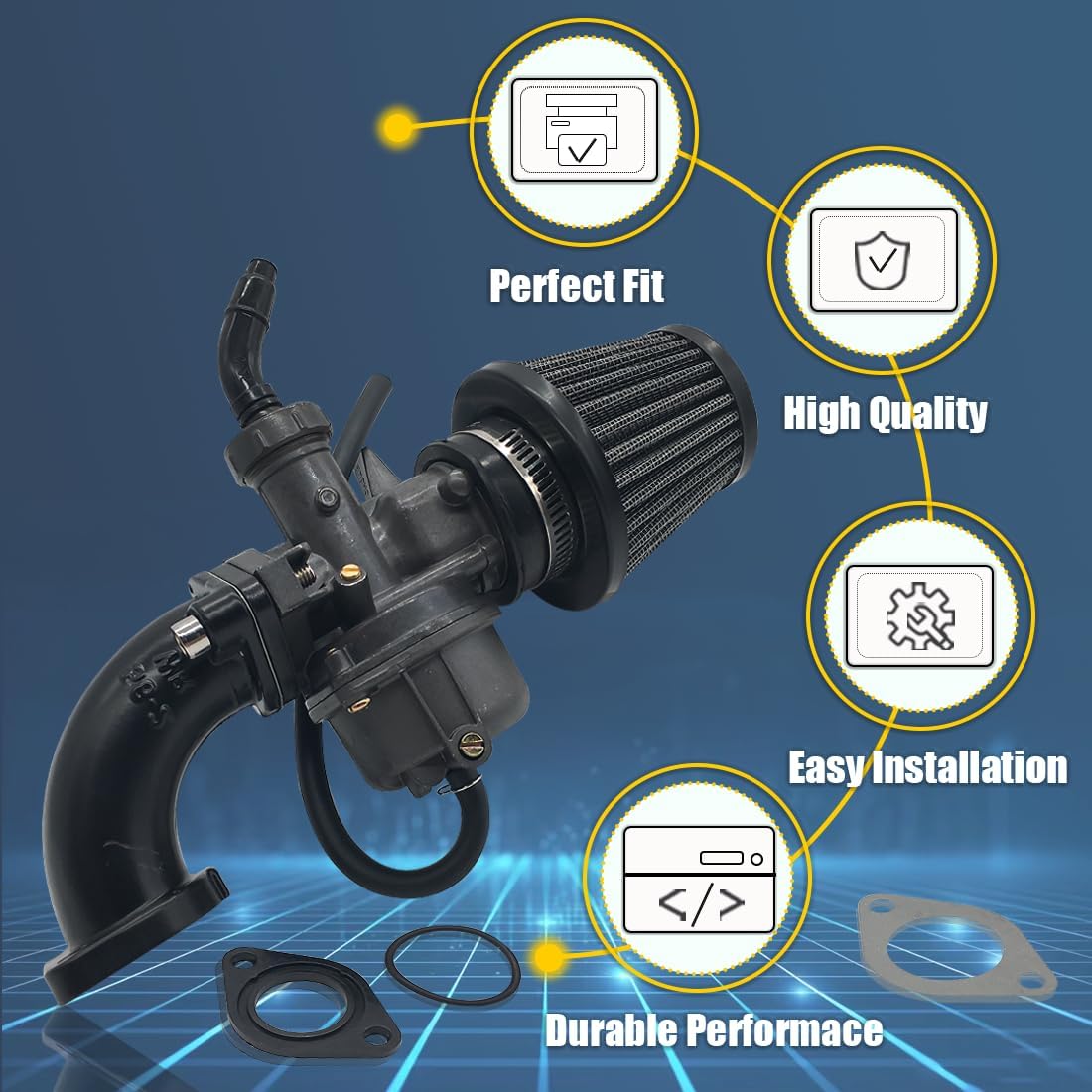 Package Include: 1 x Black Carburetor (Hand Choke), 1 x Air Filter Black, 1 x Black Gasket Set, 1 x Black Inlet Pipe Manifold