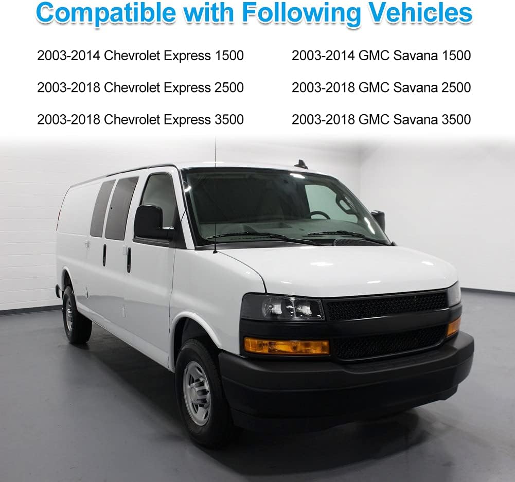 Compatible with Following Vehicles 2003-2014 Chevrolet Express 1500,2003-2018 Chevrolet Express 2500,2003-2018 Chevrolet Express 3500,2003-2014 GMC Savana 1500,2003-2018 GMC Savana 2500,2003-2018 GMC Savana 3500