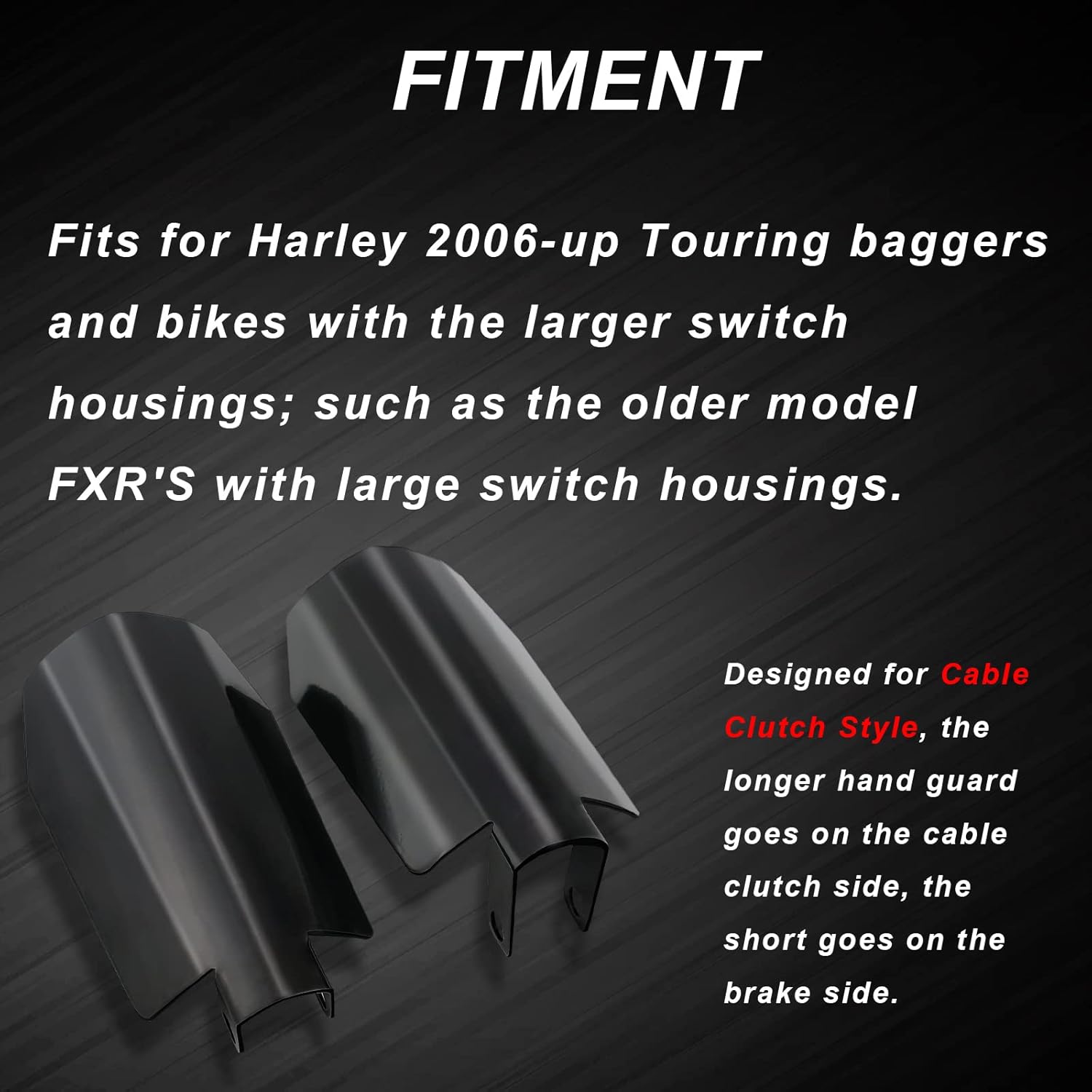 FITMENT: The large hand guards kit is compatible with 2006 and later Touring Baggers including Street Glide, Electra Glide, Road Glide, Road King, and FXR’s with larger switch housings and cable clutches