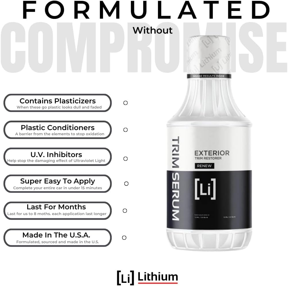 TRIM SERUM IS A RADICAL NEW SCIENCE, which required some “outside the box” rethinking about how to transform weathered and oxidized trim. PLASTIC AND RUBBER WILL LOOK BRAND NEW in seconds but will last for months.