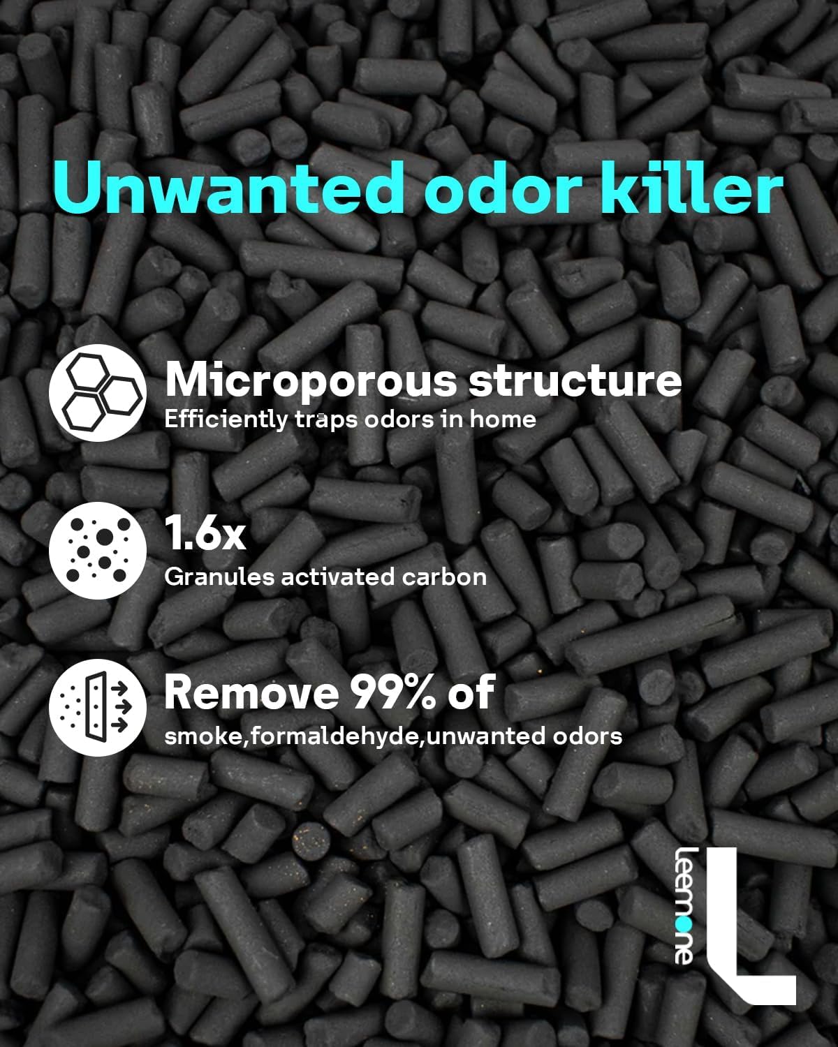 3-STAGE FILTRATION: Washable pre-filter traps hair, pet fur and lint. Advanced activated carbon filter absorbs pet, cooking, and smoke odors. H13 True HEPA filter captures pollen, dust and pet dander. The carbon particles in our product are made from FSC-certified charcoal powder