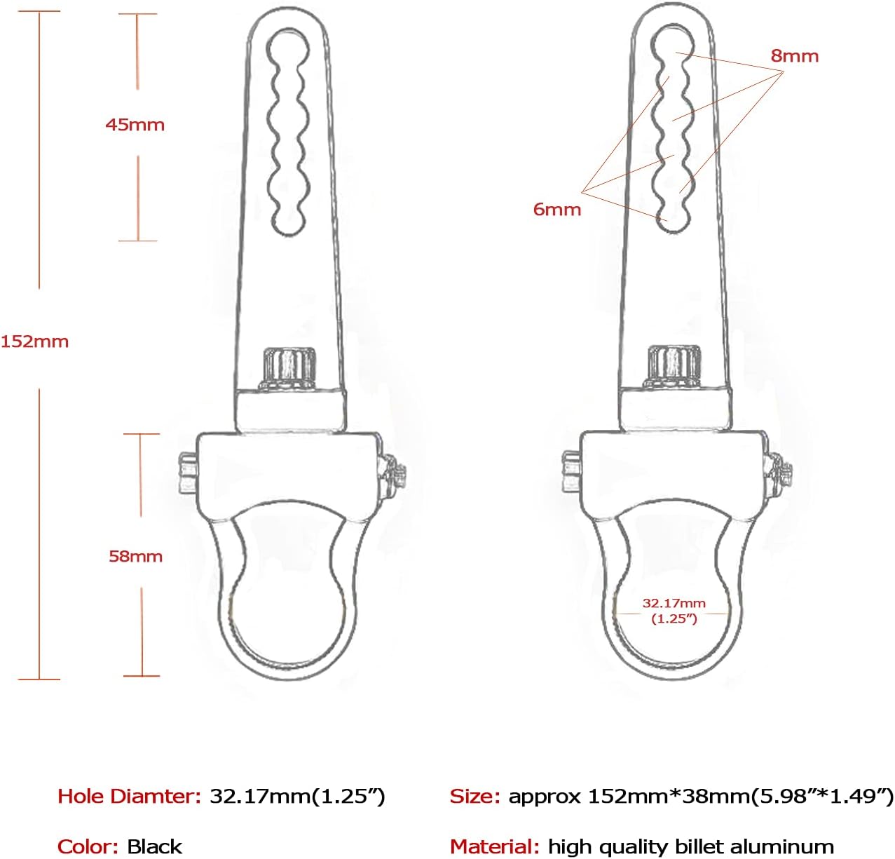 – Sold in pair, aftermarket 1.25″ adjustable light bar mounts