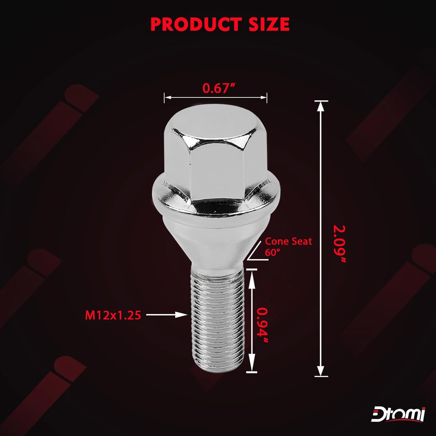 【Specifications 】- Wheel Accessories Parts, Thread pitch M12x1.25, Diagonal size: 17mm / 0.67″, Thread length: 24mm / 0.94″ , Overall Length: 53mm / 2.09″ .