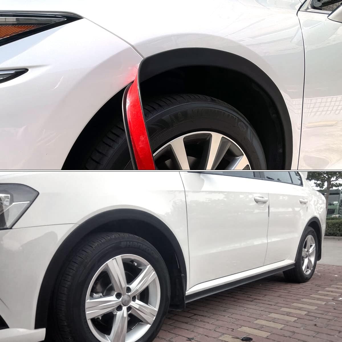 【Easy Installation】The product has good softness and plasticity. It does not require any tools. Remove the red protective film and paste it directly. It can be bent and pasted according to the radian of the wheel arch, and finally cut with scissors. After installation, press firmly on each position to make it more secure.