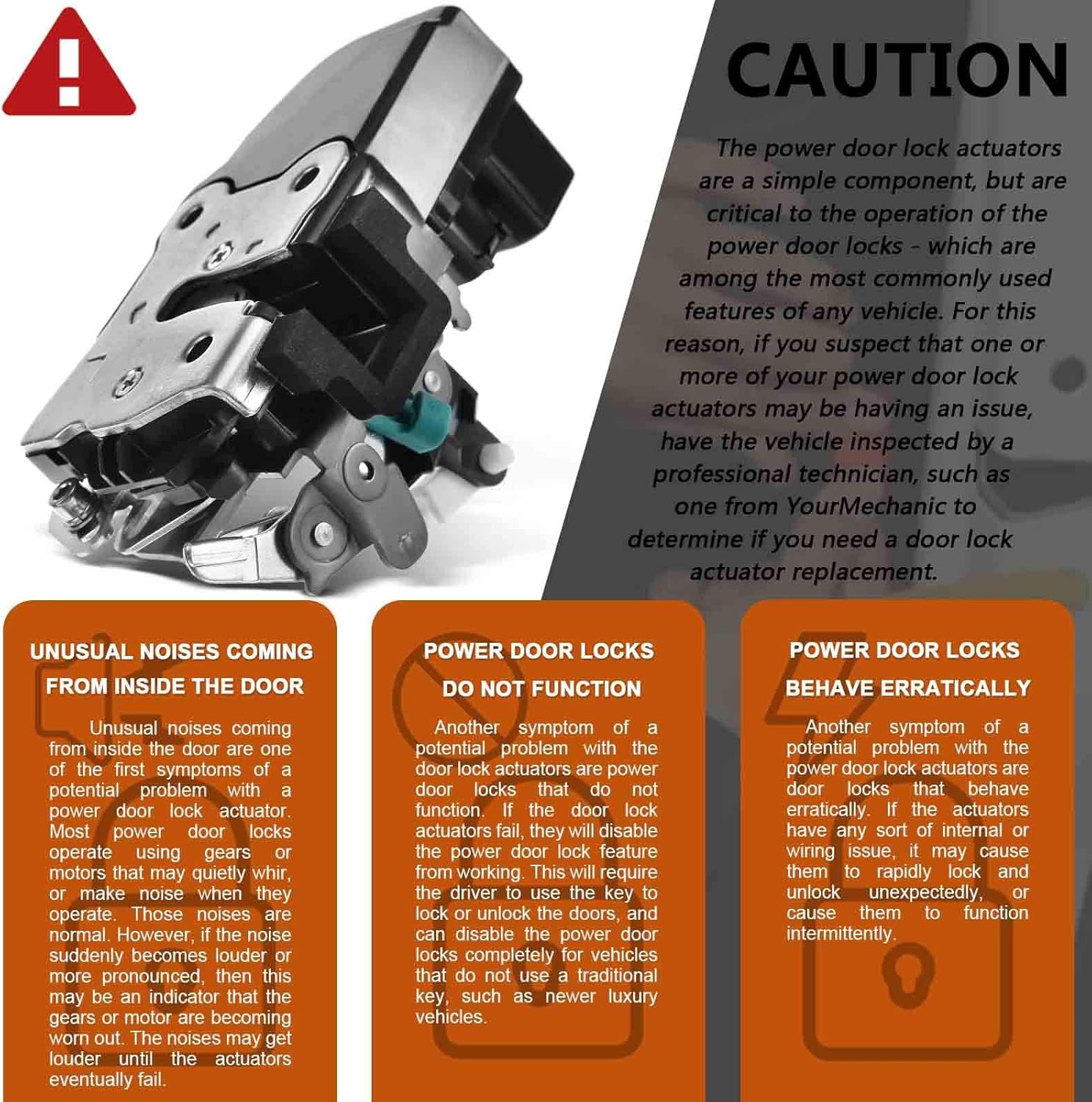 Efficient Locking: This front driver side door latch assembly help you solve the following problems ① Noise from inside the door ② Interior lights in your car that don’t shut off like they’re supposed to ③ The door lock does not unlock or lock