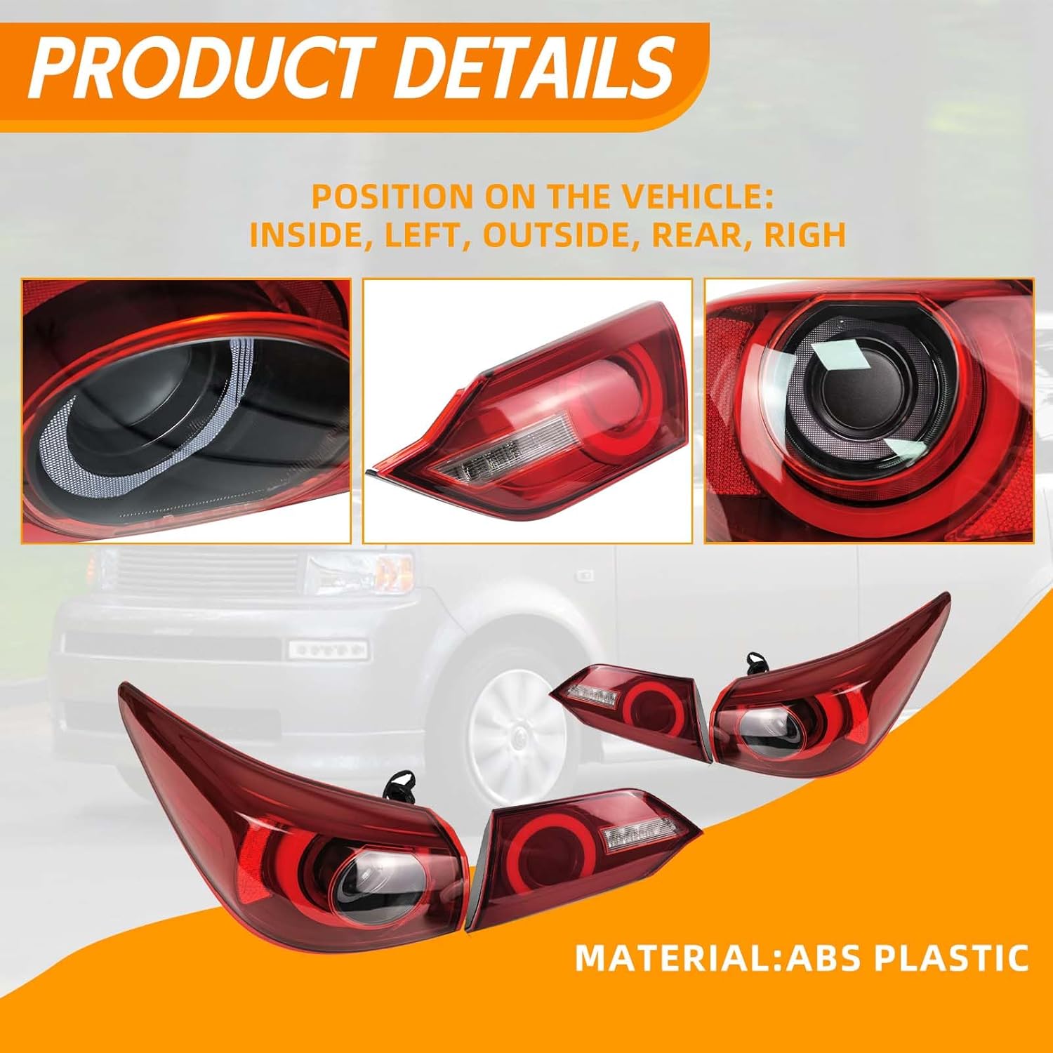 Package includes: 4pcs left and right outer + inner tail lights with LED bulbs.